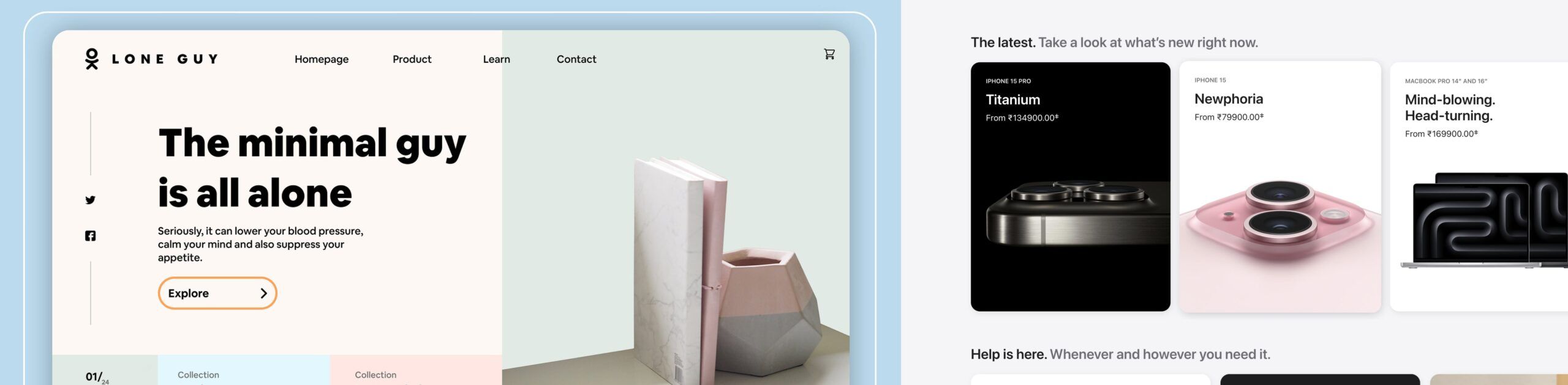 Typography is as significant as photos in terms of visual impact. Choosing the proper fonts and appealingly mixing them is critical. Sans-serif fonts are a good choice for designing a minimalist product due to their sharp and clean appearance. I recommend choosing popular geometric sans-serifs such as Gilroy, Sofia Pro, Lufga, and Circular. Other typefaces to try are Pulp, Gordita, Visby, Konnect, Geliat, Galano, and Jakarta Sans.