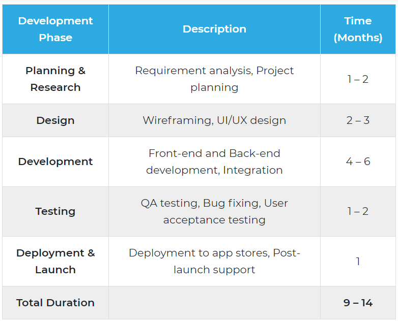 Depending on the intricacy of features, app design, maintenance, and other factors, the overall time frame may range from nine to fourteen months.