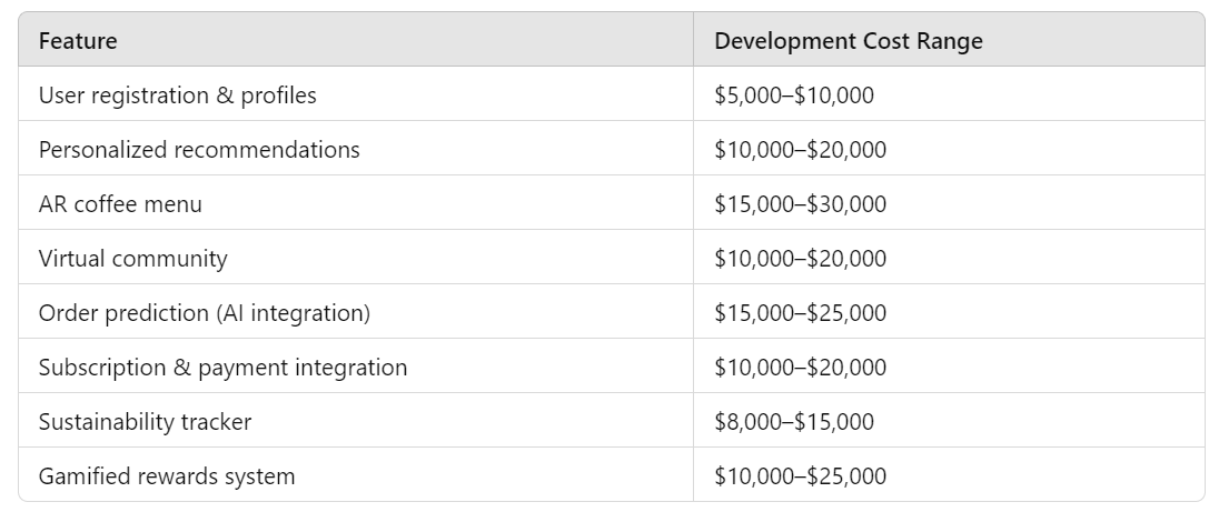 Based on these factors, the total cost to build a Starbucks-like coffee app ranges between: