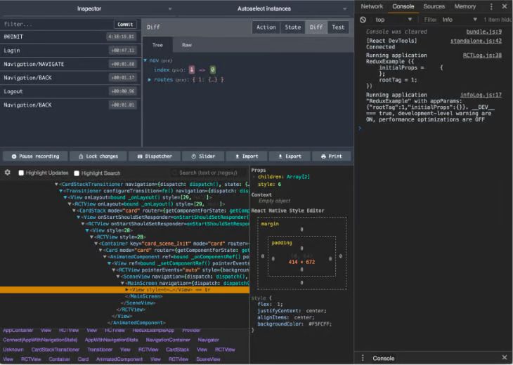 React Native Debugger allows you to inspect the hierarchy of React components in your app. Here’s an example of inspecting a component: