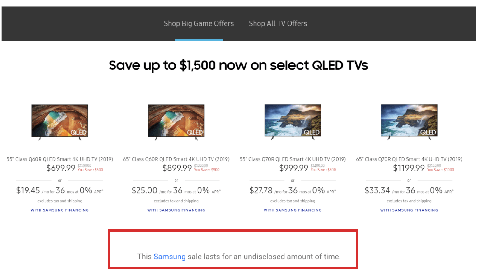 False or ambiguous deadlines: Not showing when an offer is ending or showing a false deadline so that user can rush to make a purchase is also a dark pattern trying to create urgency. User will not be able to see when an offer is ending and hence will end up purchasing the product quickly to not miss out on the discount.