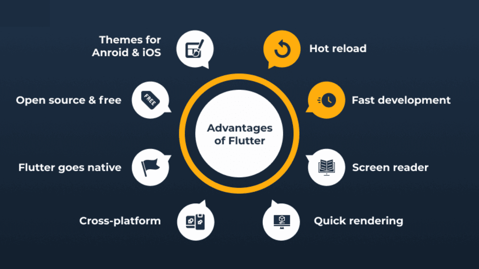 Flutter is a smart choice for iOS app and Android apps as it enables you to create apps that function flawlessly. Due to the ability to address issues and roll out updates simultaneously across different platforms, cross-platform compatibility streamlines the support and maintenance process while also cutting down on development time and expenses.