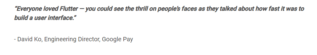 Whist everything, switching to Flutter allows Google Pay to scale up globally, quickly and efficiently. Flutter app development would only need around 1.2 times as much work as putting out functionality for both Android and iOS, which took two times the effort.