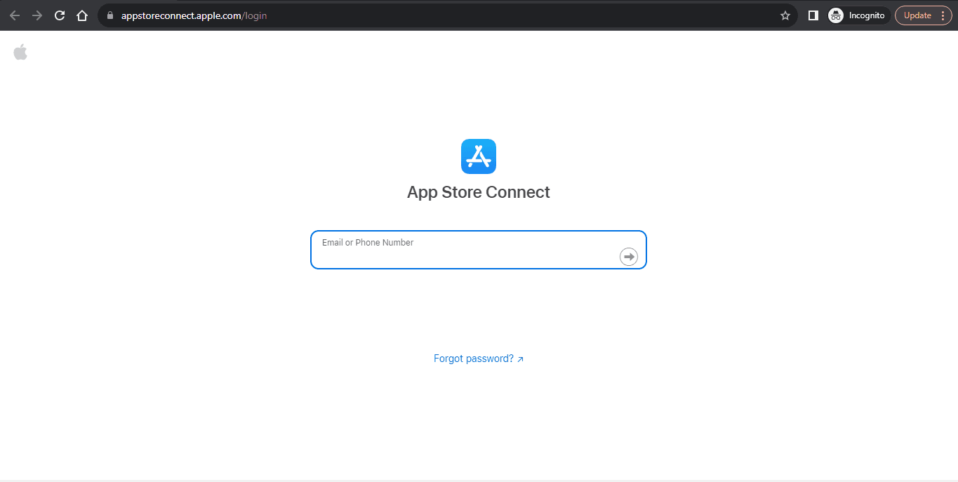 - Log in to App Store Connect, where you manage your apps for the App Store.