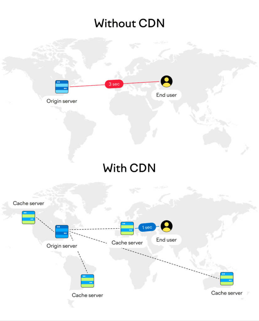 Your CDN will identify the closest server inside the user’s network if an Italian user attempts to visit your website. (Say it takes place in France.) After that, the CDN will send a cached copy of your website to the French server.
