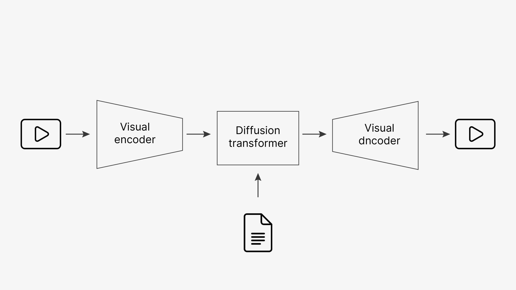 - Based on user instructions, the diffusion Transformer creates sequences of visual patches; the visual decoder reverses the encoding to produce the final movie.