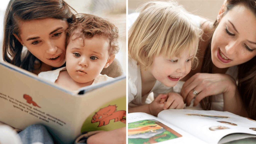 Image 1 captures a child engrossed in a storybook dominated by text, with few visual elements. In this scenario, there’s a greater chance of the child becoming distracted and potentially disruptive compared to the child in Image 2.