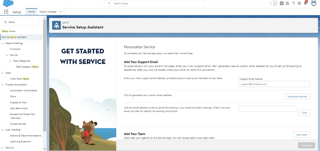 Step 2: Look for the Service Setup Assistant and click through the button.