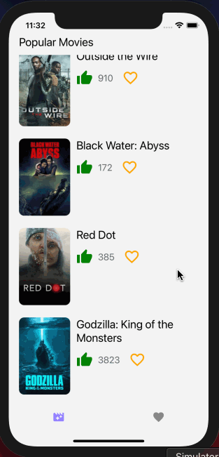 Each movie item includes a poster picture that is presented using an Image component as well as some metadata, such as the title of the film and the number of votes it has received. It is possible to construct a “add to favorite” button by using the TouchableOpacity component. Next, we will write logic to display the movies on the “Favorites” page and to change the status of the movie reducer.