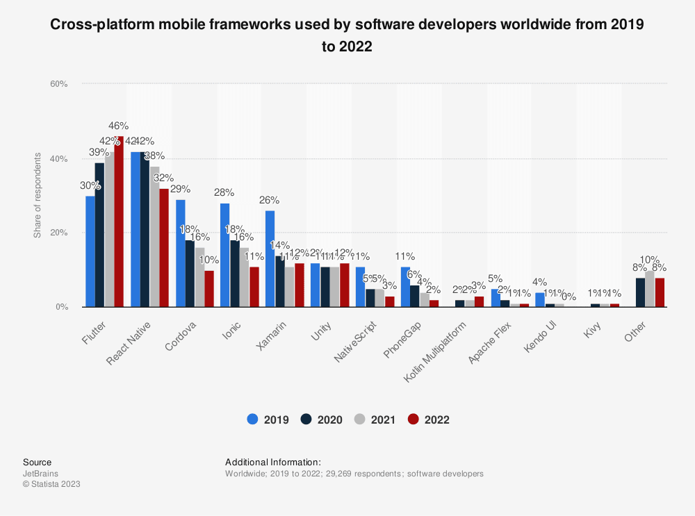 Developers now leverage these advancements to create more efficient and feature-rich applications. No wonder, around 32% of developers use React Native app development for building various applications.