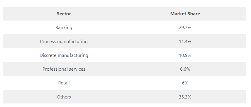 The table below displays the largest sector-by-sector dispersion of blockchain market value.