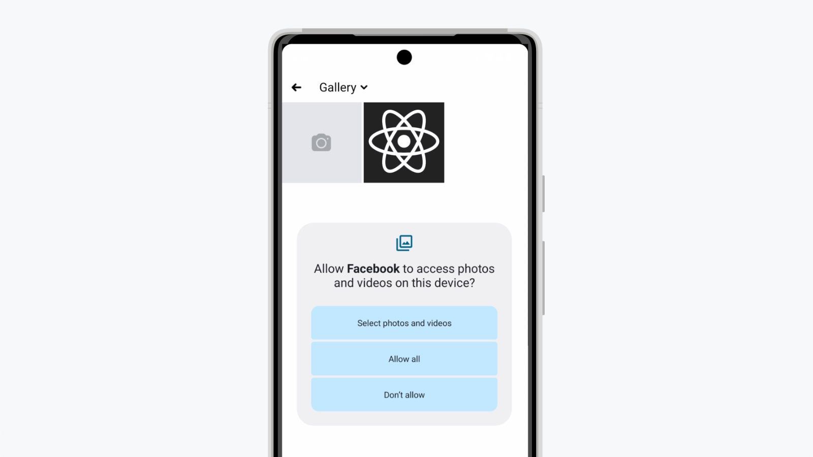 Users of Android 14 can provide app access to some items in their media library instead of all of the media by using the Selected Photos Access feature. Using the PermissionsAndroid API’s READ_MEDIA_VISUAL_USER_SELECTED permission, React Native apps can now implement this feature as of 0.73.