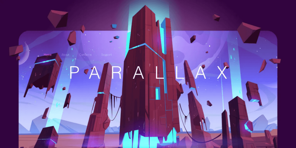 A webpage that uses parallax scrolling has its background and foreground moving at various rates.